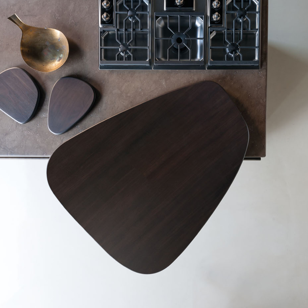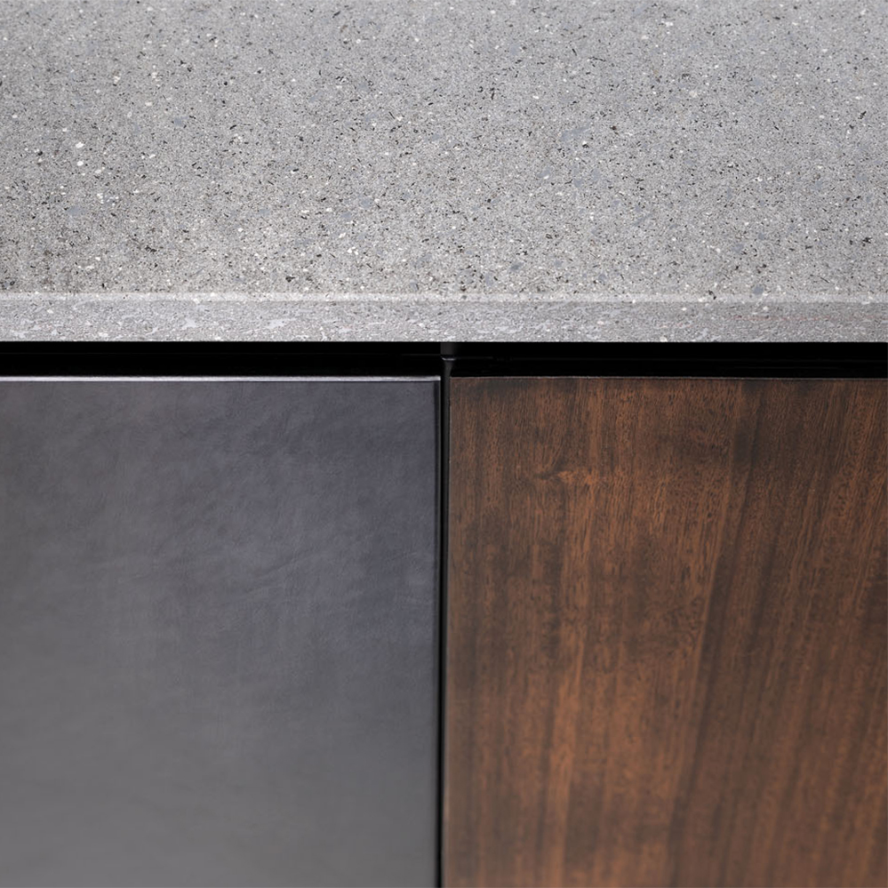 Dettagli geometrici e finiture materiche definiscono l’identità visiva della cucina, garantendo al tempo stesso affidabilità tecnica.